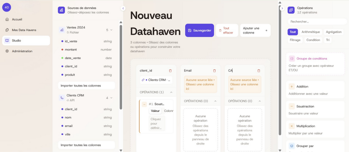 Fusionnez, nettoyez et structurez vos données depuis une interface unique.