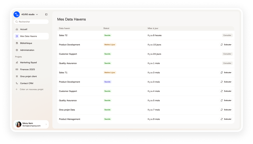 • Cloner un Data Haven pour créer une nouvelle version de travail, sans jamais impacter l’original.